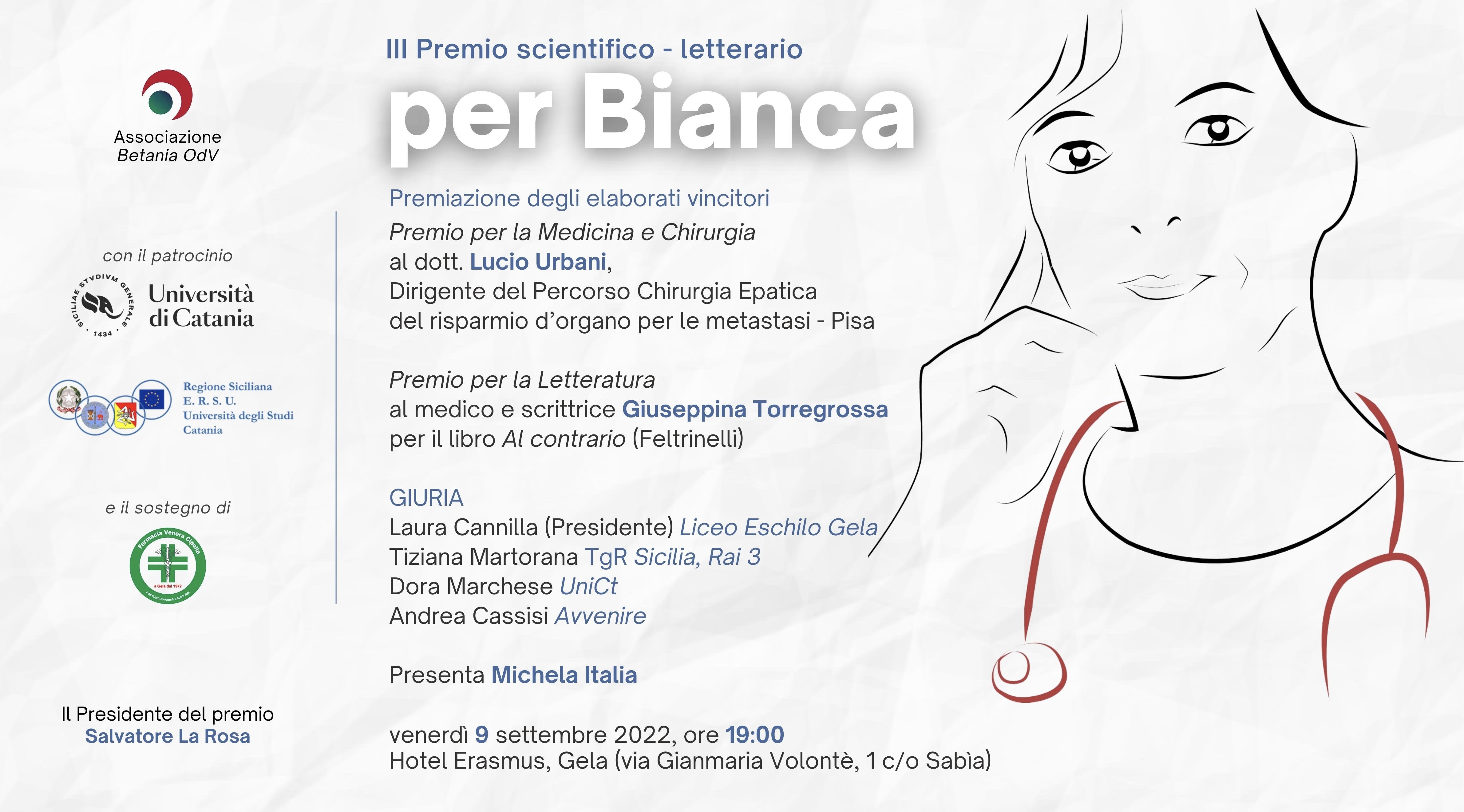 Venerdì 9 settembre, a Gela, il III premio scientifico - letterario per Bianca